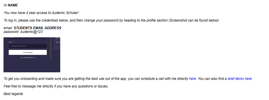 In some instances, your default password may in fact be: Audemic@123
