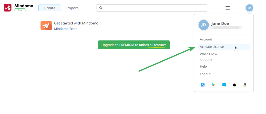 - Open Mindomo → click the “i” icon → go to License Info