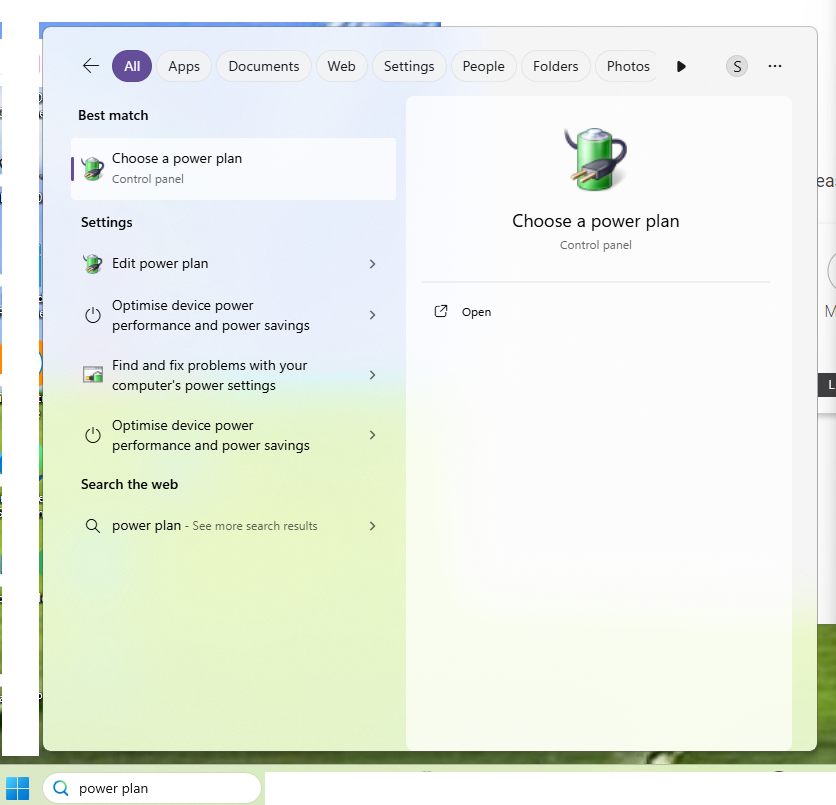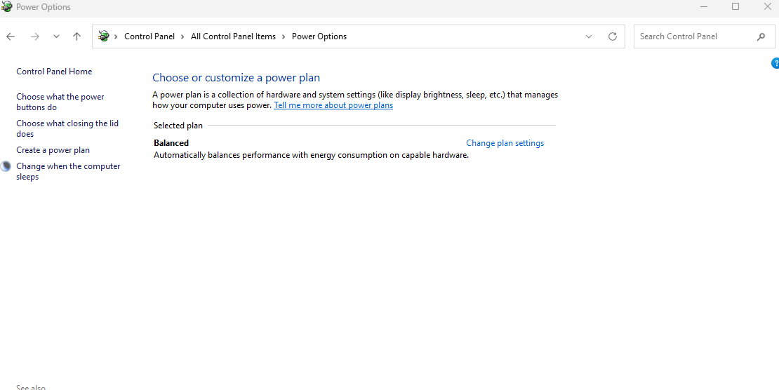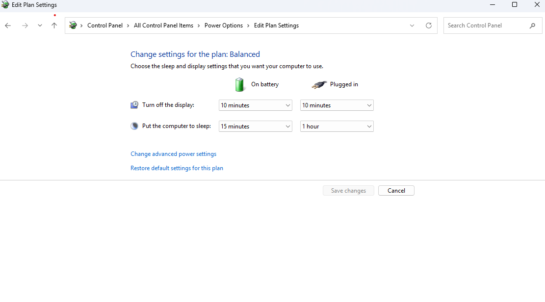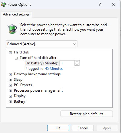 Once the plan is created, then go back to it/into it/edit power plan and select advanced options.