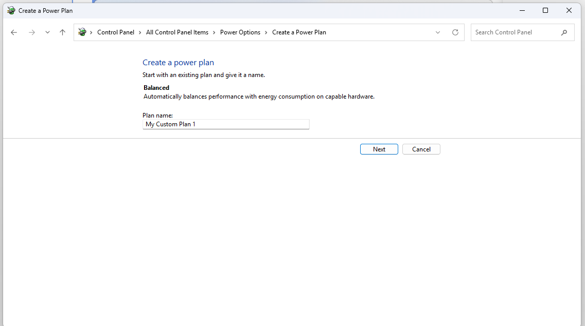 Name the power plan as you like and follow the instructions, click next until the plan is created and "saved".